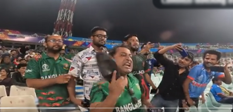 ویڈیو میں دیکھا جا سکتا ہے کہ نیدر لینڈ سے شرمناک شکست کے بعد بنگال ٹائیگرز کے ایک مداح نے اپنی ٹیم کو سخت برا بھلا کہا اور پھر اپنا جوتا اتار کر اپنے چہرے پر ہی مارنے لگا جس سے اس کی شدید مایوسی کا اظہار ہوا۔