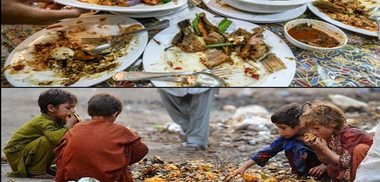 اگر ہم اپنے اردگرد ہی نظر دوڑائیں تو اندازہ ہوتا ہے کہ کتنا کھانا بھوکے انسانی پیٹوں کے بجائے کوڑے دانوں کا پیٹ بھرتا ہے۔ شادی بیاہ اور دیگر تقریبات میں بے دریغ کھانا ضائع کیا جاتا ہے۔ یہی وجہ ہے کہ پاکستان میں ہر دس میں سے چھ افراد یعنی 60 فیصد آبادی خوراک کی کمی کا شکار ہے۔