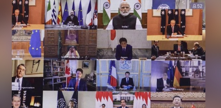اجلاس میں جی 20 رہنماؤں کا کہنا تھا کہ کرونا سے معاشی ومعاشرتی اثرات سے نمٹنا ترجیحات میں شامل ہے، انسانی جانوں کی حفاظت کی ضروری فنڈنگ یقینی بنانے کی ہرممکن کوشش کریں گے۔
