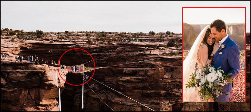 امریکی ویب سائٹ کے مطابق نوجوان ریان اور اُن کی نئی نویلی دلہن کمبرلے نے اپنی زندگی کے نئے سفر کا آغاز یوٹاہ کی 400 فٹ بلند پہاڑی پر سے کرنے کا فیصلہ کیا اور وہیں دونوں رشتہ ازدواج میں منسلک ہوئے۔