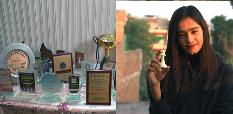 تفصیلات کے مطابق صوبہ پنجاب کے دارالحکومت لاہور سے تعلق رکھنے والی مہک گل نے بتایا کہ وہ سیکنڈ ائیر کی طلبہ ہیں، وہ خود کو شطرنج کی ملکہ اس لئے کہتی ہیں کیونکہ اُنہوں نے 2011 میں نیشنل ویمن چیس چمپئن شپ کھیلی تھی۔