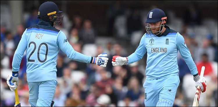 انگلش ٹیم کے بلے باز جیسن رائے نے 46 گیندوں پر 89 رنز جب کہ جونی بیئراسٹو نے 22 گیندوں پر 39 رنز کی اننگز کھیلیں۔ جو وٹ 29 رنز بنا کر آؤٹ ہوئے۔ ٰیاد رہے کہ افغانستان کی ٹیم نے پہلے وارم اپ میچ میں پاکستان کو تین وکٹوں سے شکست دے کر ورلڈکپ کا پہلا اپ سیٹ کیا تھا۔