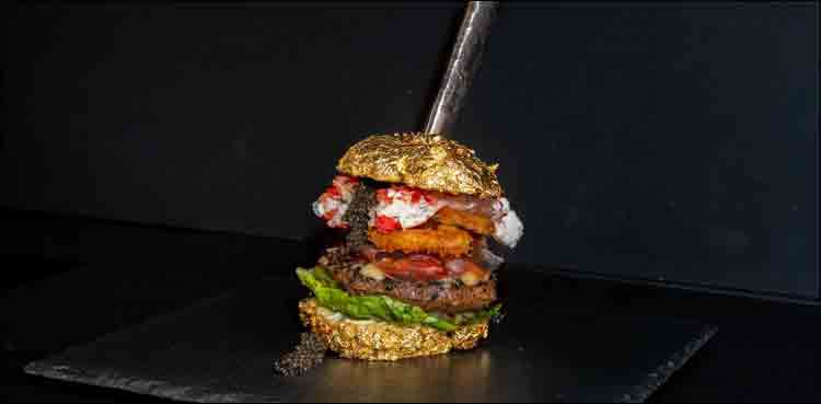 ایمسٹرڈیم : ریسٹورنٹ مالک نے پانچ ہزار یورو مالیت کا دنیا کا سب سے مہنگا برگر تیار کرلیا جس کی اوپری سطح سونے کی ہے۔