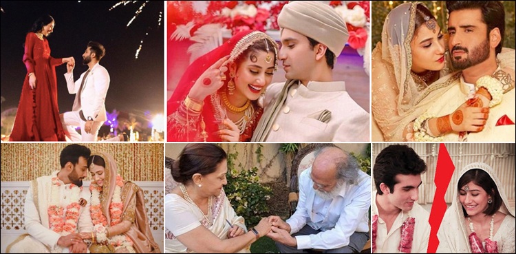سال 2020 کے دوران ہونے والی شادیوں کا انٹرنیٹ پر خوب چرچا رہا کیونکہ اداکاروں، گلوکاروں نے ازدواجی بندھن میں بندھنے کے بعد سوشل میڈیا پر اپنی تصاویر شیئر کیں اور مداحوں سے مبارک بادیں وصول کیں۔