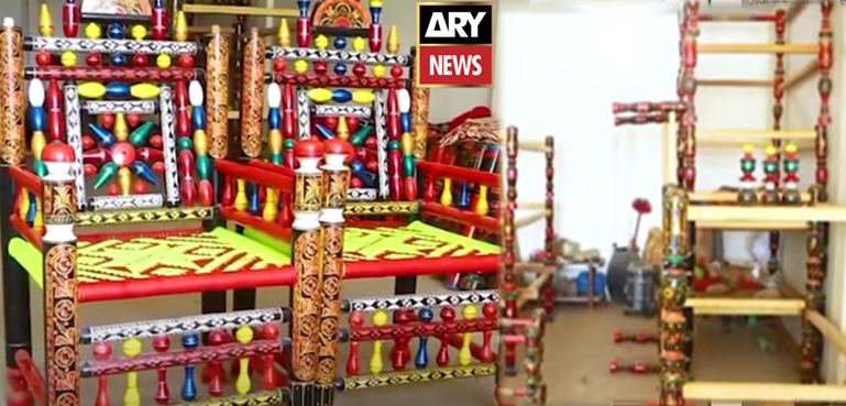 خضر عباس لکڑی کی چارپائیوں اور کرسیوں پر خوبصورت نقش ونگار بنا کر انہیں وہ روپ دیتا ہے کہ دیکھنے والے بھی حیران رہ جاتے ہیں۔