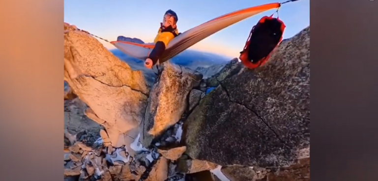 منچلوں کے سر سودا سمائے تو وہ کچھ بھی کرلیتے ہیں ایسا ہی کچھ ایک منچلے نوجوان نے کیا جس نے سینکڑوں فٹ بلند پہاڑ پر جھولا ڈال کر آرام فرمایا۔
