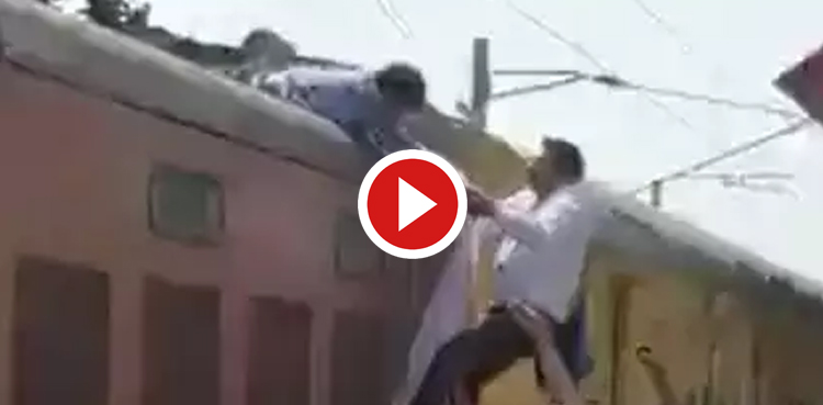 بھارت سے ایک اور ویڈیو سامنے آئی ہے جس میں ایک نوجوان نے ریل گاڑی پر چڑھ کر اپنی زندگی کا خاتمہ کرنے کی کوشش کی۔
