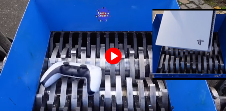 ویڈیو میں دیکھا جاسکتا ہے کہ یوٹیوبر نے سونی کمپنی کے ڈبہ پیک پلے اسٹیشن فائیو کو دکھایا اور پھر ایک ایک کر کے اُس کی تمام چیزیں تباہ کرنے کے لیے مشین میں ڈال دیں۔