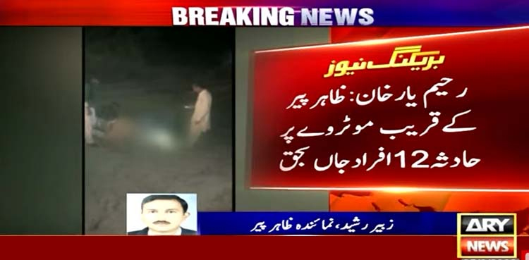 صوبہ پنجاب کے ضلع رحیم یار خان میں دلخراش ٹریفک حادثے نے 12 افراد کی جان لے لی۔